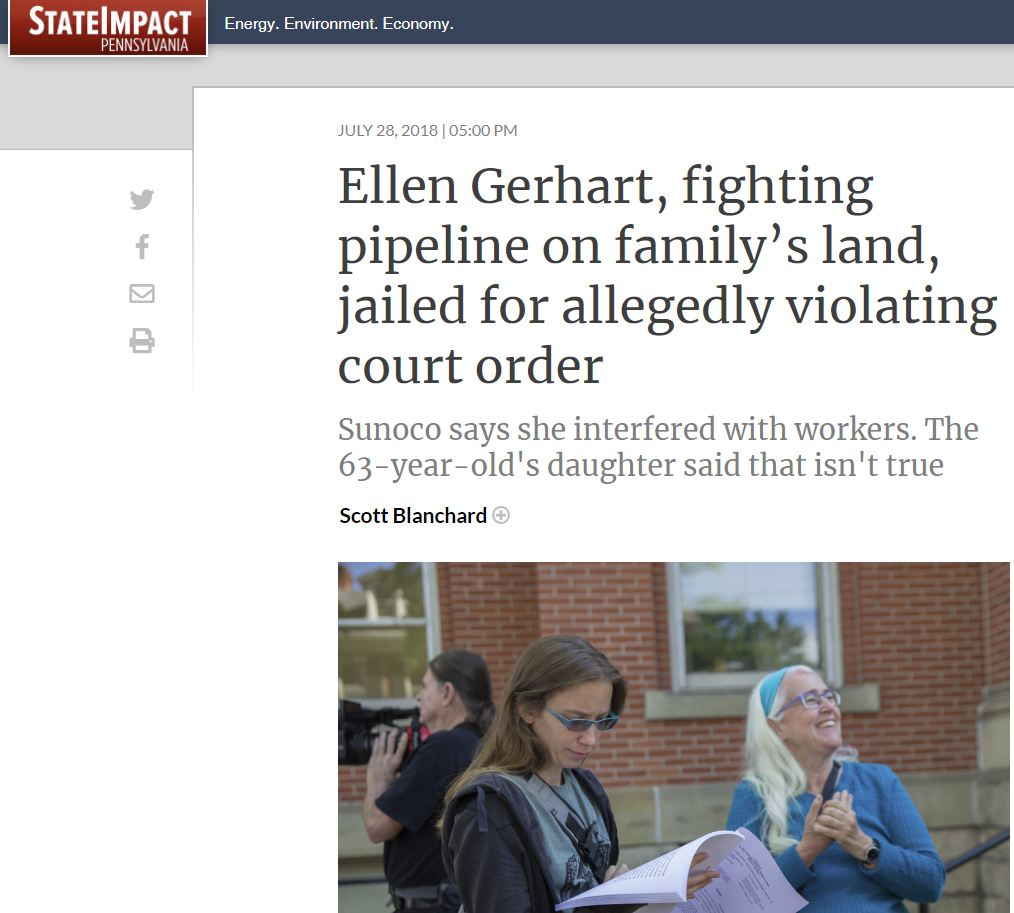 We can’t help but sympathize with Ellen Gerhart and others whose lives and homesteads are being savaged. (Click to read article)